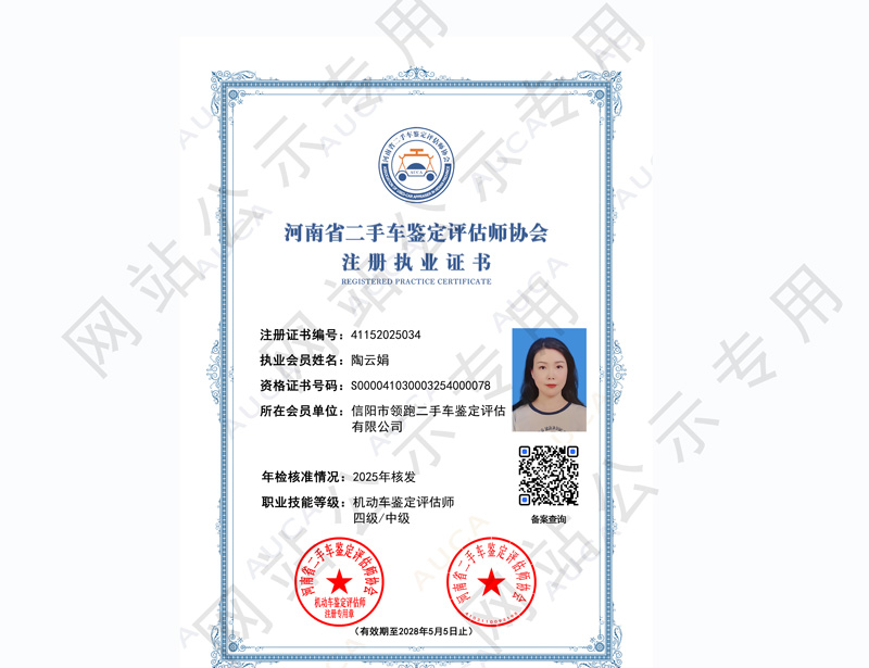 注册职业证书——陶云娟