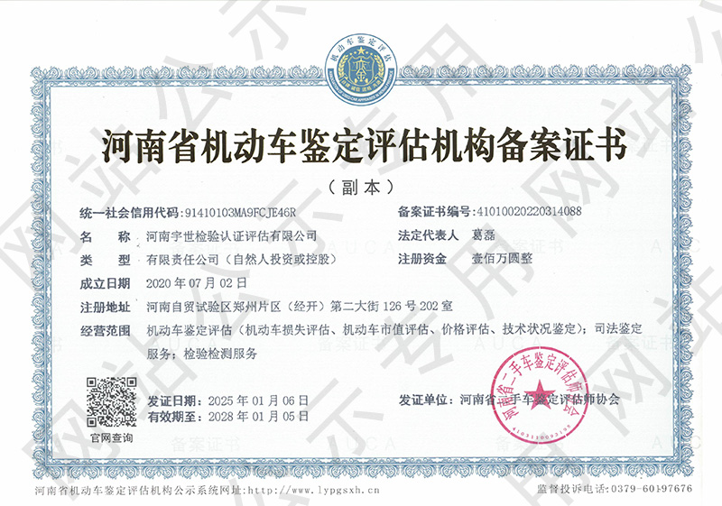 上一个:河南省中辉机动车鉴定价格评估有限公司