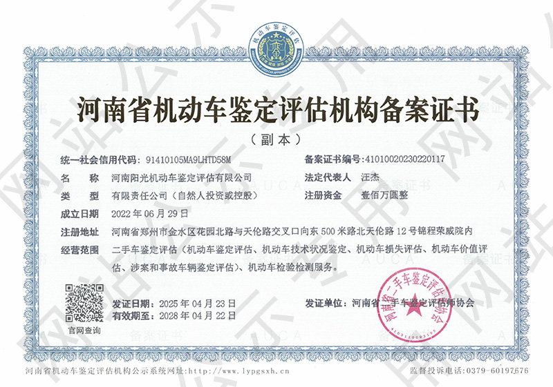 河南阳光机动车鉴定评估有限公司