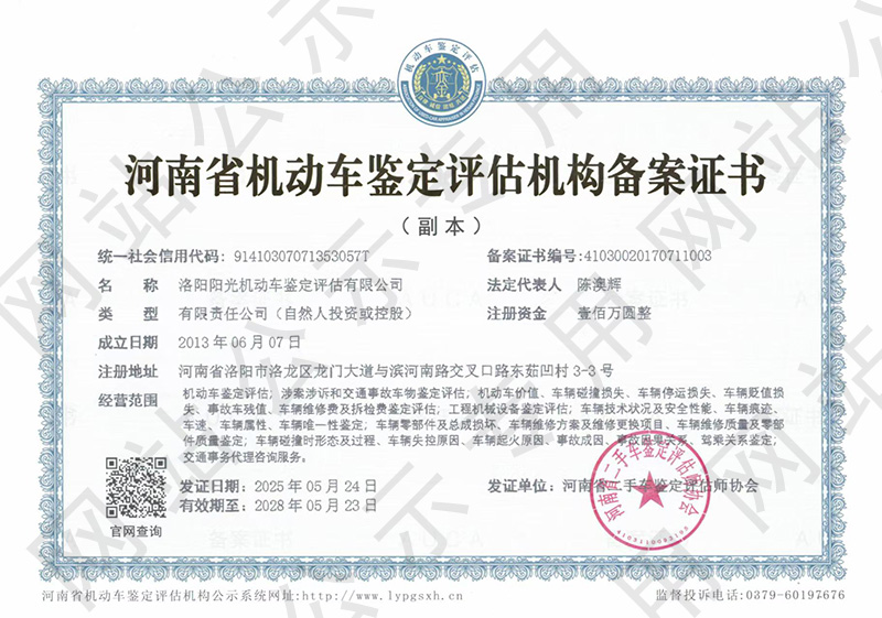 上一个:河南宝琪车辆鉴定评估技术有限公司