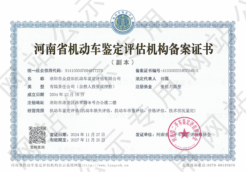 洛阳市众益旧机动车鉴定评估有限公司