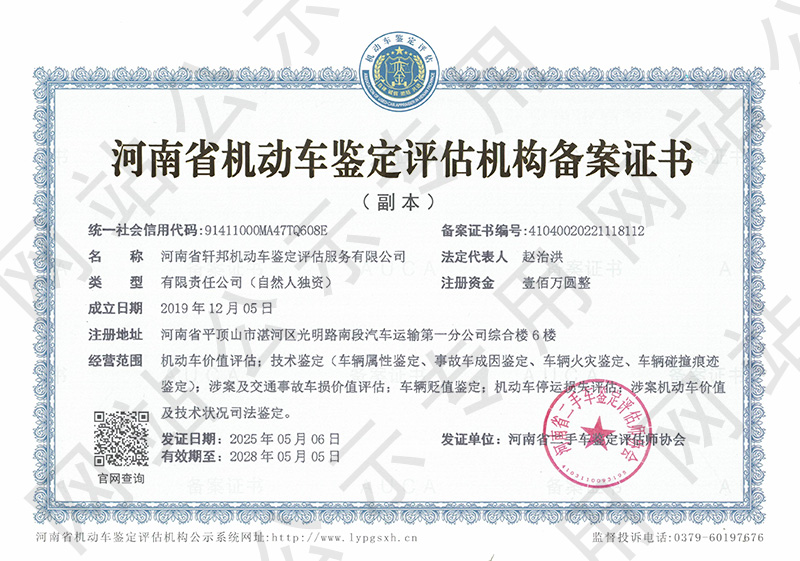 上一个:河南佳昌机动车鉴定评估所(普通合伙)