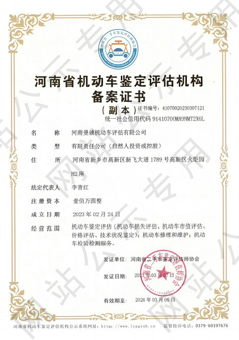 河南曼诚机动车评估有限公司