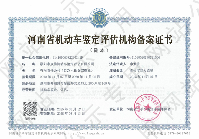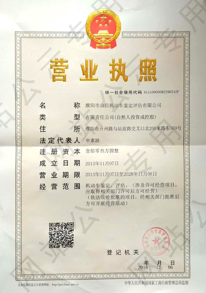 上一个:濮阳市天成机动车鉴定评估有限公司