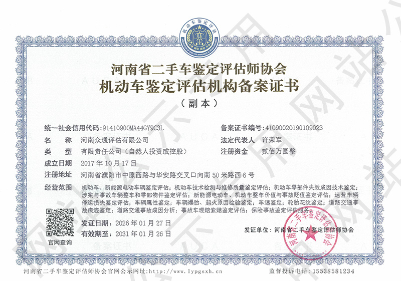 河南平尚机动车鉴定评估有限公司