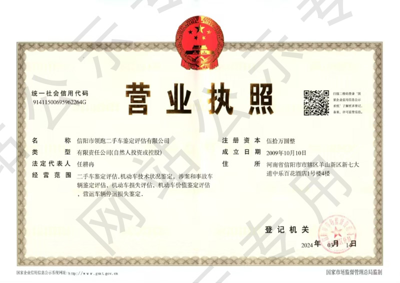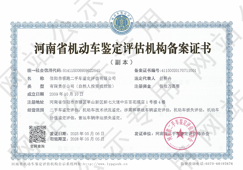 信阳市领跑二手车鉴定评估有限公司