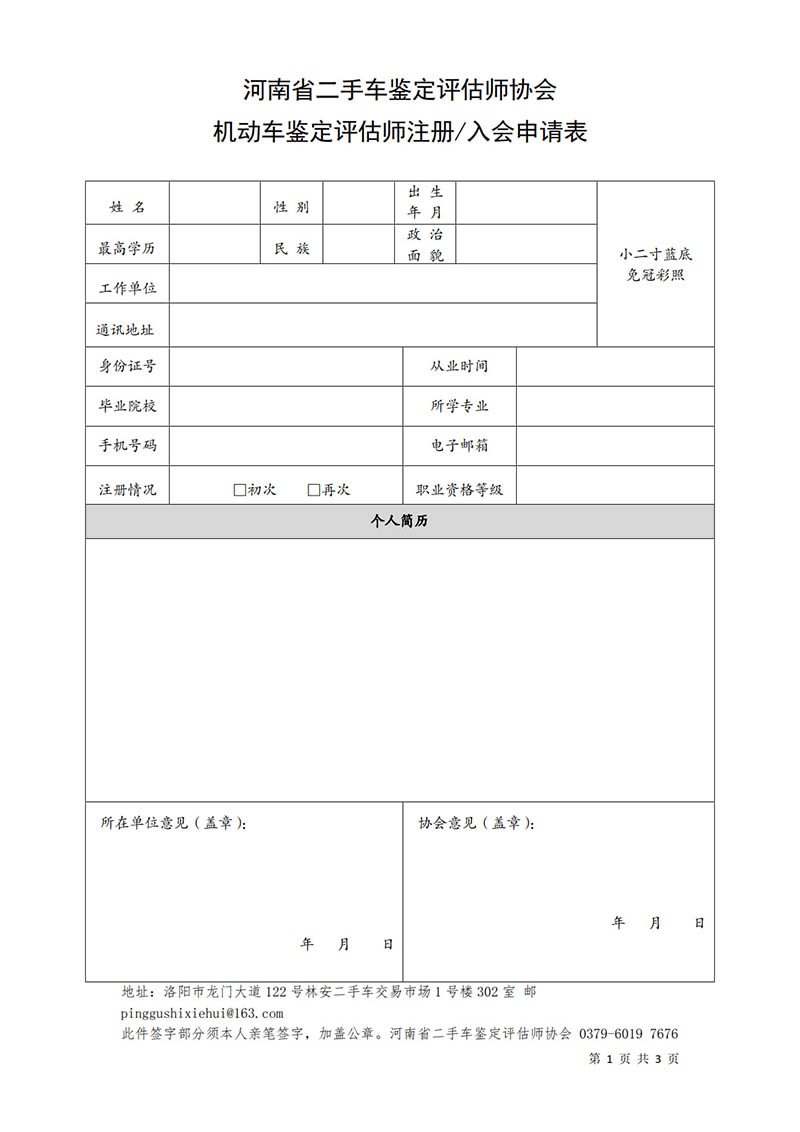 上一个:关于开展机动车鉴定评估师注册执业工作的通知(豫车评协〔2024〕8号文件)下一个:机动车鉴定评估师注册入会须知